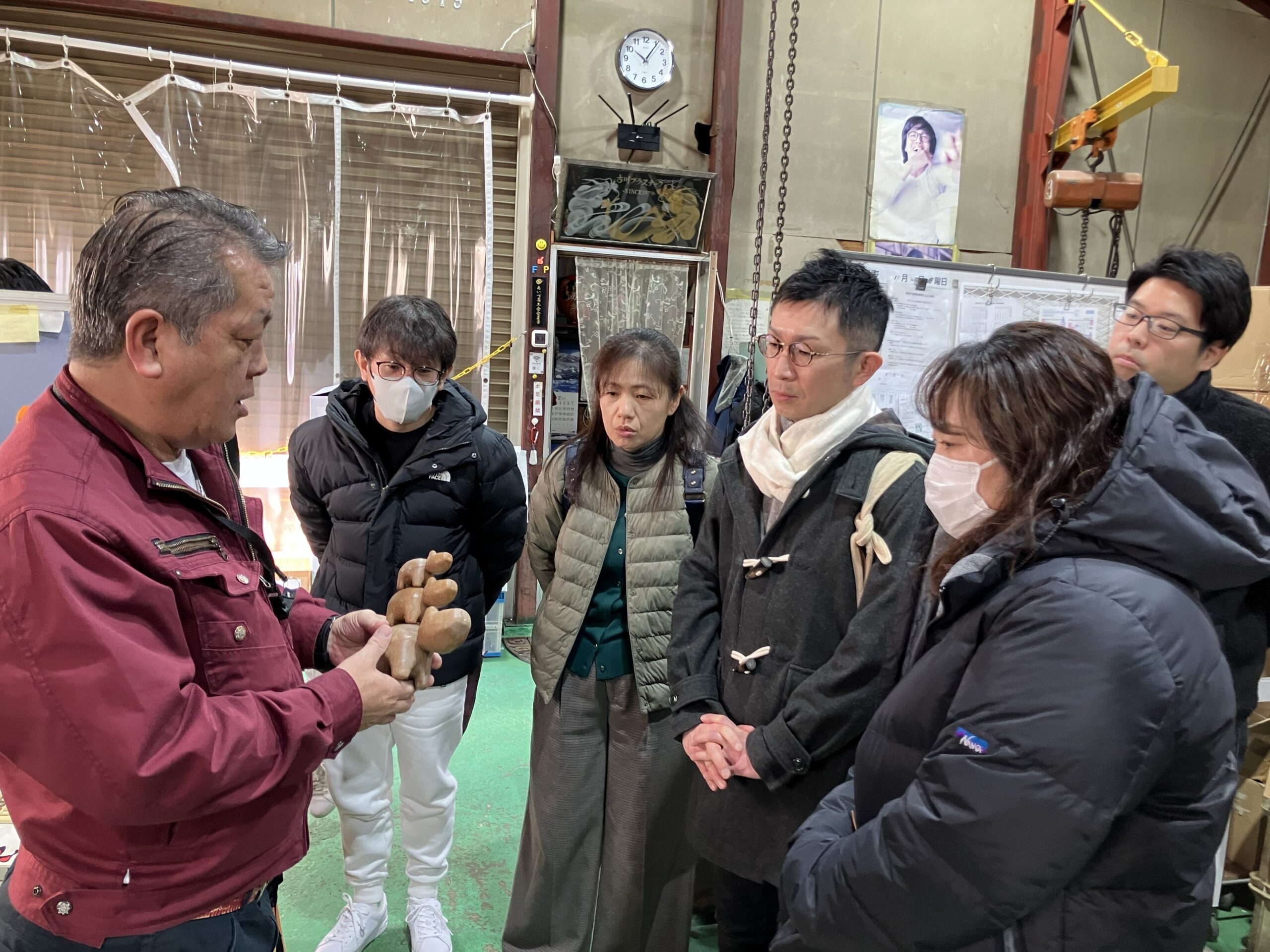 古川プラスチック様では赤べこをモチーフにした「べこぷら」を主力商品としており、当日は実際の製造現場を見学させていただきました。